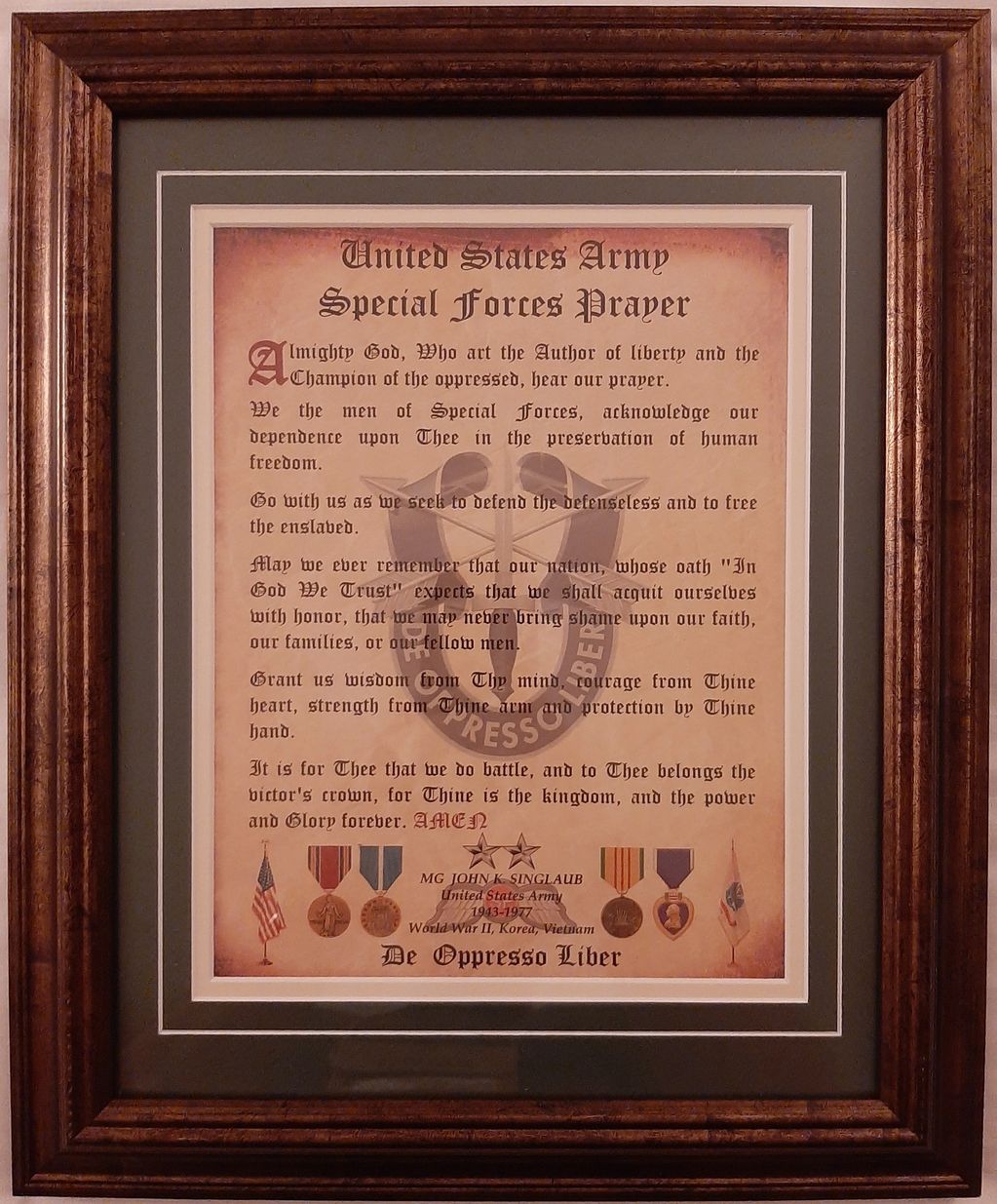 Mitch is close to MG (Ret) Singlaub and sees him on a regular basis. We decided to put together a personalized Special Forces Prayer for the General.